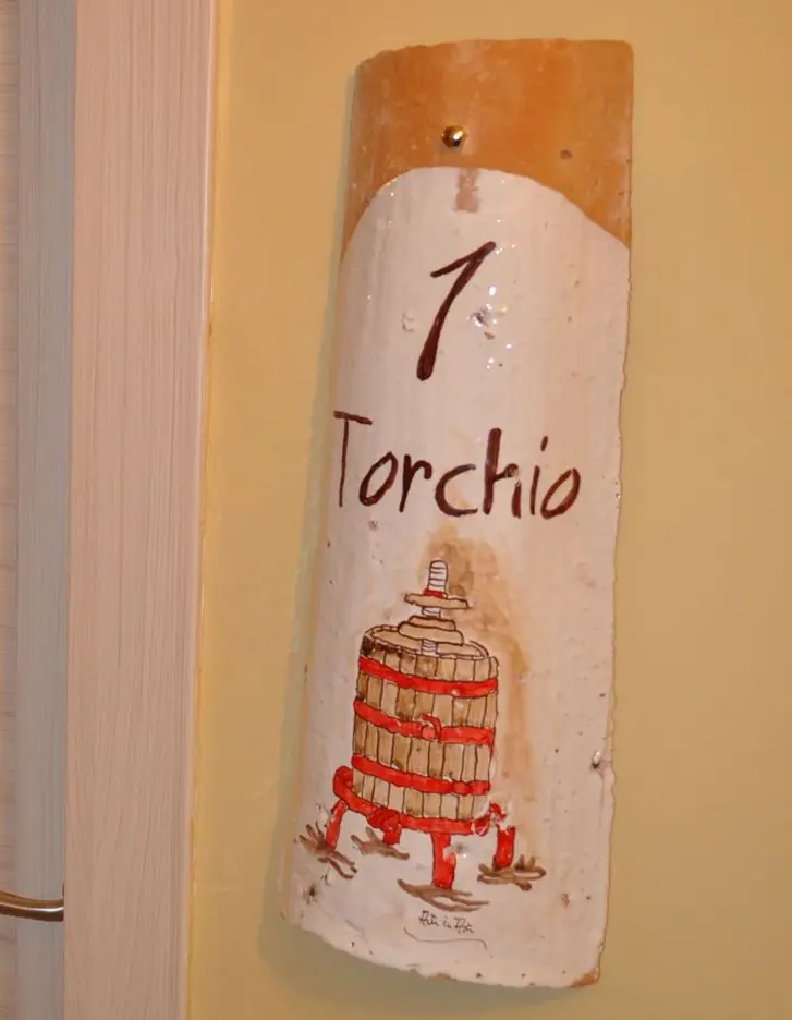 Ogni stanza è identificata da un nome che richiama il mondo della vite e del vino, e questi sono: Torchio - Tino - Tonneau - Tralcio.